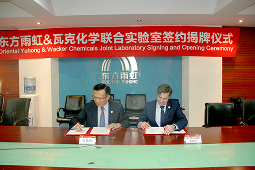 4月18日,北京東方雨虹防水技術股份有限公司和瓦克化學股份有限公司(以下簡稱瓦克化學)在京宣布成立聯合實驗室并舉行揭牌儀式。