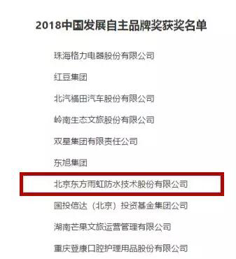 日前,由中國發(fā)展網(wǎng)主辦、中國發(fā)展研究院承辦的第四屆“發(fā)展中國”年度盛典在京舉行。盛典上頒布了包括十大改革創(chuàng)新人物在內(nèi)的多個獎項(xiàng),東方雨虹與格力電器、雙星集團(tuán)等企業(yè)一道榮獲2018中國發(fā)展自主品牌獎。