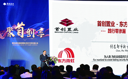1月16日下午,首創置業股份有限公司召開2019年共贏大會。本次會議以“聚首創享”為主題,來自全國的170余位首創供應商代表齊聚北京,東方雨虹工程建材集團總裁張志萍、工程建材集團北方區總經理楊海明、總工程師許寧等受邀出席。東方雨虹與中建五局等17家企業共同入選2018年度首創置業優秀供應商。