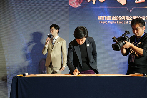 大會最后一個環節為匠心公約簽署。首創置業總裁鐘北辰、副總裁胡為民及與會的優秀供應商代表在匠心公約書上莊重簽名。