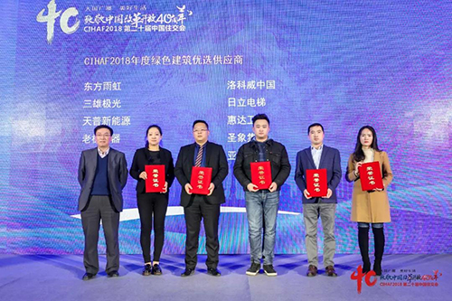 1月7日,由中國房地產(chǎn)報、中國房地產(chǎn)網(wǎng)、中國住交會組委會等聯(lián)合主辦的2018中國綠色建筑產(chǎn)業(yè)鏈主題峰會在京舉行。會上公布了中國綠色建筑領(lǐng)域的多項年度榮譽,東方雨虹、日立電梯、老板電器等企業(yè)榮獲“CIHAF2018年度十大綠色建筑優(yōu)選供應(yīng)商”。