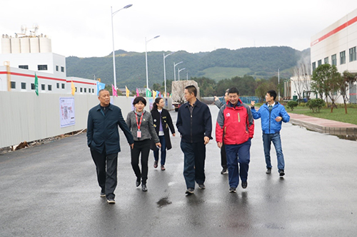 12月6日,建德市人大常委會副主任徐建華、高鐵新區管委會主任張國潮一行調研東方雨虹杭州生產基地。杭州東方雨虹廠長兼建設總指揮李景絨、副廠長湯效亮接待調研組。