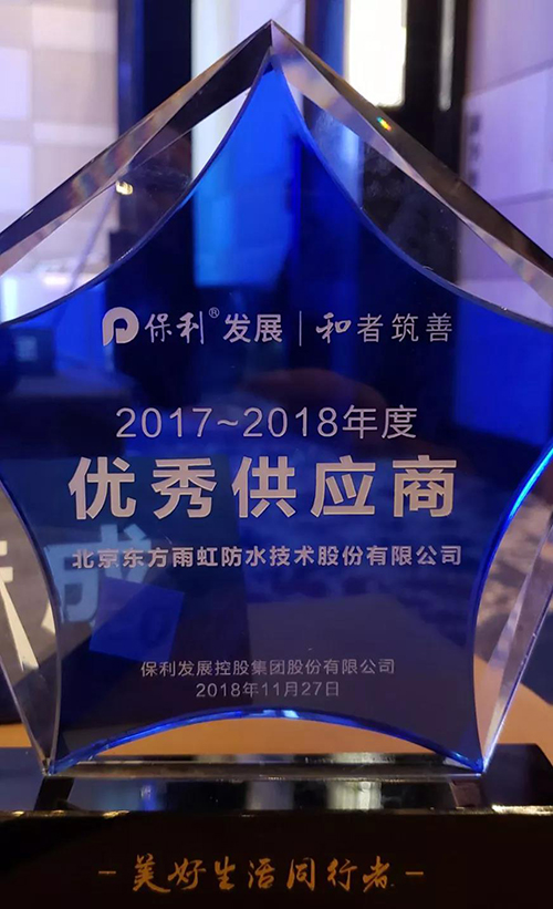 11月27日,由保利發(fā)展控股集團舉辦的“匠心發(fā)展·和你同行”2018年供應(yīng)商大會于廣東佛山舉行。會上,東方雨虹憑借過硬的產(chǎn)品質(zhì)量及細(xì)致周到的服務(wù)獲得保利發(fā)展控股“2017—2018年度優(yōu)秀供應(yīng)商”稱號。