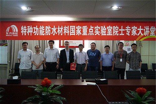 6月12日下午,應(yīng)特種功能防水材料國家重點實驗室邀請,法蘭西大學研究院院士,法國特等教授Christophe Thomas博士參觀訪問東方雨虹國家重點實驗室,并作題為《雜環(huán)單體聚合:一種簡單的生物基聚合物可控聚合方法》的學術(shù)報告。報告會由東方雨虹集團產(chǎn)品研發(fā)中心主任助理郭嘉博士主持,特種功能防水材料國家重點實驗室主任段文鋒以及東方雨虹研發(fā)系統(tǒng)百余名技術(shù)人員聆聽了本次報告。