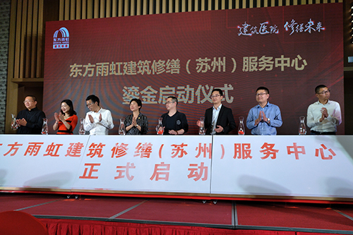 4月20日,繼東方雨虹建筑修繕技術有限公司運營總部落戶蘇州工業園區后,蘇州服務中心也在江蘇蘇州市姑蘇區蘇站路光華苑盛大開業。來自蘇州地區物業公司、地產企業等近100多位嘉賓到場祝賀。東方雨虹集團副總裁、建筑修繕技術有限公司董事長張志萍女士,總經理劉紹光先生,副總經理竇吉培先生,市場總監張勇先生,江蘇事業部總經理郭樹彬先生等出席了開業慶典。