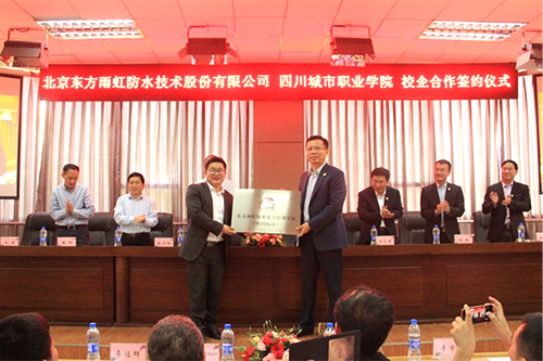 4月3日,東方雨虹防水技工培訓(xùn)學(xué)校(四川校區(qū))成立大會(huì)暨東方雨虹與四川城市職業(yè)學(xué)院合作簽約儀式在城市職業(yè)學(xué)院學(xué)術(shù)報(bào)告廳舉行。 東方雨虹集團(tuán)總裁向錦明、集團(tuán)工程總監(jiān)劉學(xué)峰、四川東方雨虹總經(jīng)理張帆、東方雨虹集團(tuán)培訓(xùn)學(xué)院副院長(zhǎng)徐志明、四川城市職業(yè)學(xué)院院長(zhǎng)王世倫、副院長(zhǎng)趙齊陽(yáng)、四川城市職業(yè)學(xué)院對(duì)外合作部部長(zhǎng)敬陽(yáng)、四川城市職業(yè)學(xué)院建筑工程學(xué)院院長(zhǎng)劉洋等以及300余名學(xué)生代表見證了此次簽約儀式。