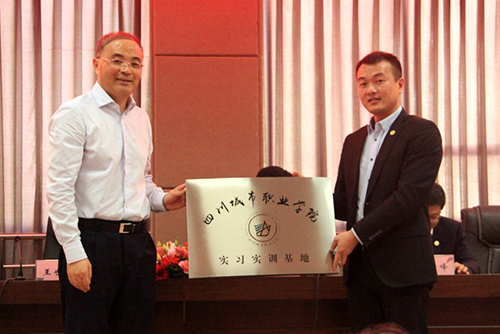 王世倫致詞,他歡迎各位嘉賓、專家、學(xué)生代表的到來(lái),并表示此次培訓(xùn)學(xué)校的成立意味著校企合作的雙方邁上了新的臺(tái)階,跨入新的時(shí)代。 向錦明介紹了東方雨虹的發(fā)展歷程、業(yè)績(jī)成果、人才需求等情況,并表示希望通過(guò)校企合作創(chuàng)辦防水技工培訓(xùn)學(xué)校,為防水行業(yè)輸送更多的專業(yè)人才,培養(yǎng)大批防水工匠;他祝愿東方雨虹和四川城市職業(yè)學(xué)院的合作越來(lái)越緊密,同時(shí)也要求培訓(xùn)學(xué)校要辦出水平、辦出成效。