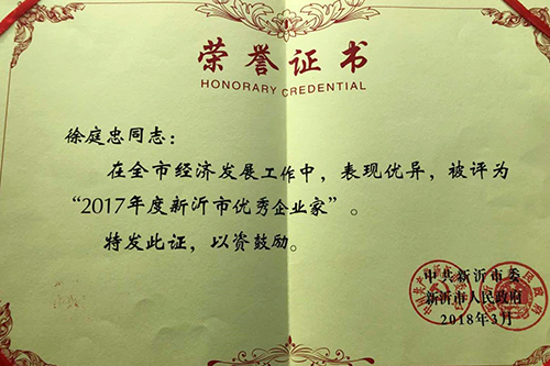 3月17日上午,新沂市政府在影劇院隆重召開“全市高質(zhì)量發(fā)展大會(huì)”,對(duì)全市經(jīng)濟(jì)發(fā)展工作中的先進(jìn)單位和先進(jìn)個(gè)人進(jìn)行了表彰獎(jiǎng)勵(lì)。徐州臥牛山生產(chǎn)基地廠長(zhǎng)徐庭忠被評(píng)為“2017年度新沂市優(yōu)秀企業(yè)家”。