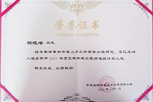 3月8日上午,巴陵人才工程推進會在湖南岳陽召開。會議公布“2017年重點人才支持計劃、系列人才選拔計劃人選(團隊)名單”,岳陽東方雨虹防水技術(shù)創(chuàng)新團隊榮獲“科技創(chuàng)新人才團隊”稱號,外加劑技術(shù)保障部經(jīng)理楊曉峰入選“岳陽市2017年巴陵卓越工程師選拔計劃”。