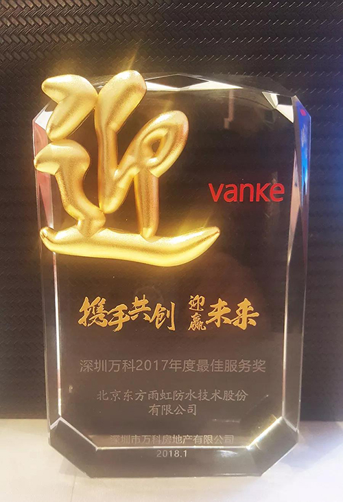 此次獲獎(jiǎng)既是深圳萬(wàn)科對(duì)東方雨虹防水系統(tǒng)服務(wù)品質(zhì)的肯定,也是雙方精誠(chéng)合作的見(jiàn)證。東方雨虹將繼續(xù)堅(jiān)持高標(biāo)準(zhǔn)、高品質(zhì)的誠(chéng)信經(jīng)營(yíng)和服務(wù),助力深圳萬(wàn)科打造品質(zhì)工程,為和諧人居貢獻(xiàn)力量。