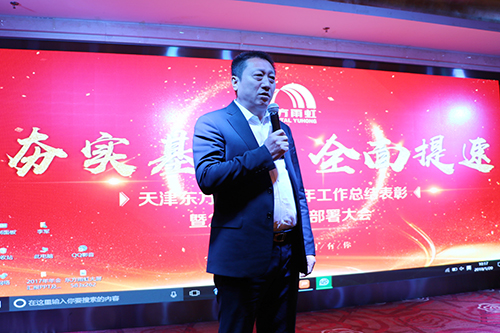 1月20日上午,天津東方雨虹2017年工作總結(jié)表彰暨2018年工作部署大會(huì)在天津錦龍國(guó)際酒店隆重召開(kāi)。東方雨虹防水集團(tuán)總裁劉斌先生、集團(tuán)財(cái)務(wù)總監(jiān)徐瑋女士、集團(tuán)總裁辦主任齊芬女士、透汽膜支持服務(wù)平臺(tái)總監(jiān)葛新標(biāo)先生、MS膠支持服務(wù)平臺(tái)總監(jiān)朱衛(wèi)如先生、TPO支持服務(wù)平臺(tái)總工程師李建軍先生、以及華砂、DAW公司銷(xiāo)售經(jīng)理等共同參會(huì)。