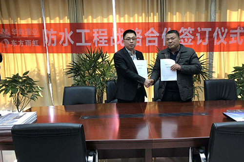 12月18日上午,平輿縣華鼎置業有限公司與東方雨虹舉行了戰略合作簽約儀式。平輿華鼎置業采購部經理牛文超、工程部經理史曉紅、東方雨虹豫東區域省總經理牛星等出席了會議。