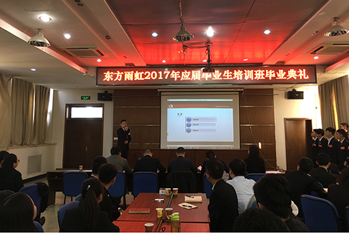 11月9-11日,東方雨虹舉辦2017年應屆畢業生培訓班,來自生產、工程、技術、業務、職能序列共計98位應屆生參加。培訓班分為初識雨虹——文化認同——回爐集訓三個部分,通過邀請往屆生的榜樣分享,以及高管的引導講解,為學員們排解困惑、樹立信心、指明前進方向。