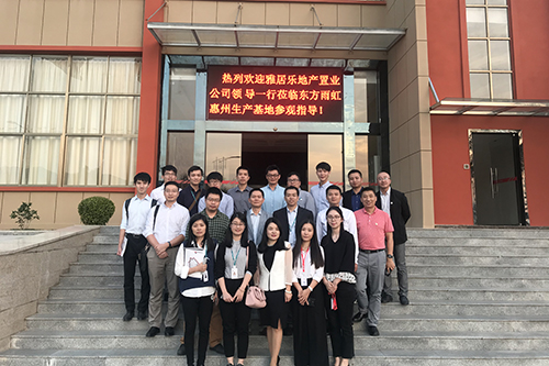 10月30日,雅居樂(lè)地產(chǎn)置業(yè)公司采購(gòu)中心總經(jīng)理李守飛、工程總監(jiān)楊賢棟等一行15人考察東方雨虹惠州生產(chǎn)基地。