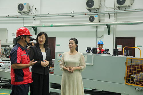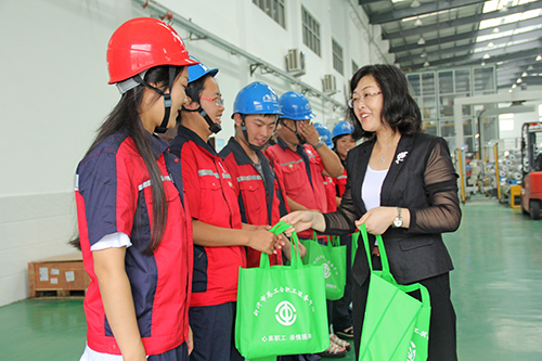 慰問團一行看望了徐州臥牛山卷材二車間的生產者,參觀了無胎改性瀝青防水卷材的生產過程;接著,聽取了廠長徐庭忠關于發放藥品、配備冰柜、定時供應綠豆湯等防暑降溫福利配發情況的詳細報告。