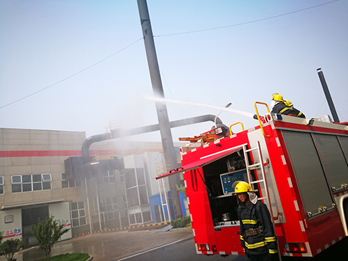 28日下午14時50分,隨著瀝青卷材環(huán)保裝置火災(zāi)警報突然響起,唐山生產(chǎn)基地立即啟動火災(zāi)撲救及應(yīng)急疏散預(yù)案。應(yīng)急小組迅速就位,全體員工有序撤離;唐山市豐南區(qū)消防大隊官兵接到報警電話后抵達(dá)現(xiàn)場開展滅火救援,消防演習(xí)取得圓滿成功。