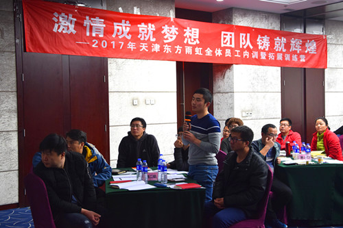 業(yè)務系統(tǒng)課程培訓在最后一日進行,由外聘講師從銷售心態(tài)、銷售流程、銷售技巧三方面系統(tǒng)地講授了銷售技巧課程,為業(yè)務人員在2017年的業(yè)務工作注入了強心劑。整個集訓期間,培訓課程安排緊湊,利用晚餐后時間,天津東方雨虹副總經(jīng)理周振生為大家?guī)怼豆芾砼c營銷》課程的精彩分享,大家受益匪淺。 通過本次集訓,使全體員工在體能與意志方面得到充分鍛煉,提升了整個團隊的協(xié)作意識,同時增強了業(yè)務系統(tǒng)的營銷實戰(zhàn)經(jīng)驗。厲兵秣馬,枕戈待旦,天津東方雨虹將在2017年擁抱機遇,鏖戰(zhàn)本土,乘勝前進。