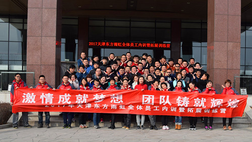 本次集訓主題為“激情成就夢想,團隊鑄就輝煌”,分為團隊拓展、課程培訓兩部分內(nèi)容。集訓前,天津東方雨虹總經(jīng)理文敬芳作動員講話,希望大家從這次集訓開始,開闊思路,集思廣益,大膽探索,勇于創(chuàng)新,在2017年擁抱機遇,大有作為。 集訓前兩日,由全員共同參與的團隊拓展活動豐富多彩,通過摸石過河、云中漫步、勇闖雷陣等拓展項目,充分激發(fā)了員工的個人潛能,增強了團隊成員的配合度和凝聚力,并使全員深刻領(lǐng)悟到:做任何工作要“謀定而后動,方能事半功倍”。