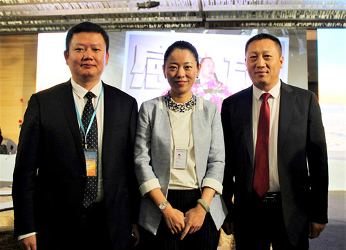 東方雨虹防水集團總裁劉斌(右),大客戶事業部總經理陳欣剛(左)與萬科集團副總裁王蘊(中)合影