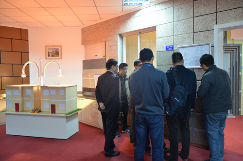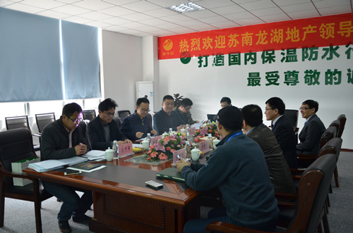 2016年3月16日,龍湖集團蘇南公司工程部總監(jiān)胡宏偉、招標中心負責人王德倫、工程管理中心負責人黃衛(wèi)軍、工程中心土建經(jīng)理王學(xué)建、研發(fā)經(jīng)理孔蒙一行五人參觀江蘇臥牛山公司,對臥牛山公司的建筑保溫技術(shù)水平及在施工項目進行參觀考察。江蘇臥牛山公司董事長、總經(jīng)理劉志榮、總工程師花海東、副總經(jīng)理劉和軍、副總經(jīng)理張建新、副總工程師成時亮負責接待并陪同考察。 上午10點,蘇南龍湖地產(chǎn)相關(guān)領(lǐng)導(dǎo)一行參觀公司之后,前往技術(shù)中心展廳對公司的技術(shù)水平做更深一步的了解。技術(shù)展廳的考察包括參觀保溫主材樣板、施工樣板、外墻涂料樣板以及建筑保溫系統(tǒng)展示墻等,臥牛山公司總工程師花海東向龍湖地產(chǎn)相關(guān)領(lǐng)導(dǎo)全面介紹了建筑保溫多種系統(tǒng)解決方案。