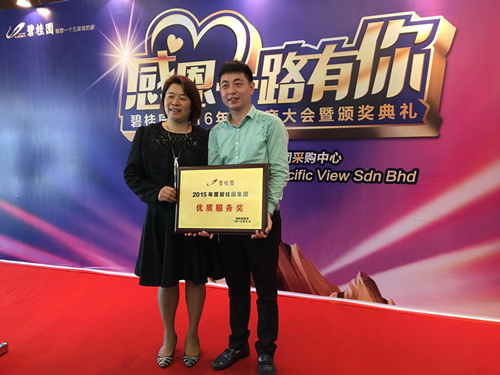 2016年3月10日,碧桂園2016年供應(yīng)商大會在馬來西亞碧桂園森林城市召開,此次大會主要評估2015年碧桂園供應(yīng)商服務(wù)質(zhì)量。據(jù)悉,碧桂園集團(tuán)的供應(yīng)商多達(dá)15900余家,本次表彰的是其中優(yōu)秀的60余家。東方雨虹憑借優(yōu)質(zhì)的產(chǎn)品和出色的服務(wù)脫穎而出,榮獲2015年度碧桂園優(yōu)質(zhì)服務(wù)獎。