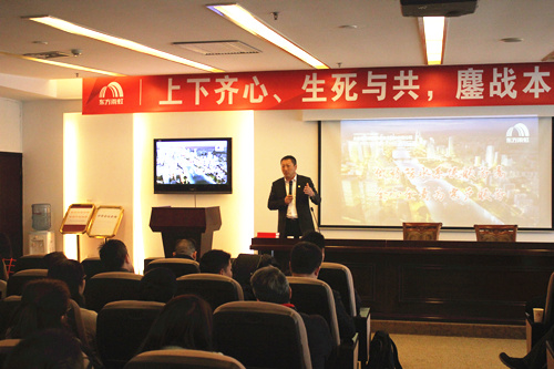 業(yè)務(wù)體系開班集訓(xùn)上除公司高管及內(nèi)訓(xùn)師授課外,還邀請了東方雨虹防水集團(tuán)總裁劉斌先生為業(yè)務(wù)體系授課。他首先分析宏觀經(jīng)濟(jì)形勢并解析了東方雨虹2016年六大戰(zhàn)略,為上海公司業(yè)務(wù)人員在2016年伊始注入了一針強(qiáng)心劑。