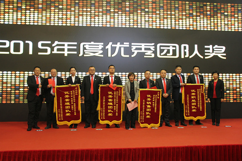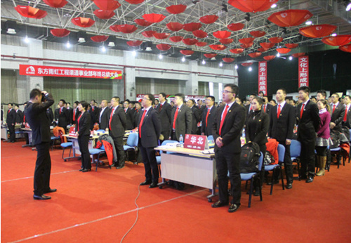 東方雨虹防水集團(tuán)副總裁、工程渠道事業(yè)部董事長張志萍以《為榮譽(yù)而戰(zhàn),為親人而戰(zhàn),我們?nèi)σ愿啊窞轭},回顧了工渠事業(yè)部2015年的工作成果,部署2016年發(fā)展規(guī)劃。東方雨虹工渠華東片區(qū)總經(jīng)理馬秉珠、營銷服務(wù)部總經(jīng)理王玉飛、售后服務(wù)部經(jīng)理常麗君也分別就2015年華東團(tuán)隊(duì)的成功經(jīng)驗(yàn)、2015年工渠市場工作方面的成功與不足、2015年售后服務(wù)等方面的工作做了經(jīng)驗(yàn)分享和匯報(bào)。 本次大會表彰了2015年表現(xiàn)突出的優(yōu)秀員工,共設(shè)立:突出貢獻(xiàn)獎、優(yōu)秀新人獎、優(yōu)秀員工獎、優(yōu)秀管理員工、優(yōu)秀團(tuán)隊(duì)獎等9項(xiàng)獎項(xiàng),共計(jì)130余人及4個(gè)團(tuán)隊(duì)獲獎,現(xiàn)場為他們頒發(fā)了證書及獎金。