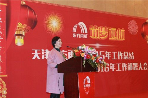 天津東方雨虹董事長兼總經(jīng)理文敬芳女士發(fā)表講話