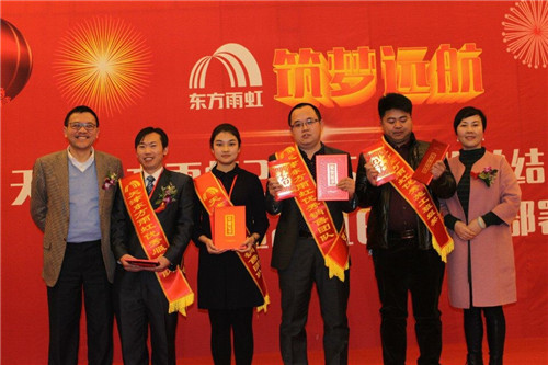 1月20日下午14:00,天津東方雨虹2015年度工作總結(jié)表彰暨2016年度工作部署大會在天津賽象酒店隆重召開。天津東方雨虹全員齊聚一堂,總結(jié)2015年經(jīng)驗(yàn)與得失,部署2016年工作計劃。東方雨虹董事長李衛(wèi)國先生、東方雨虹品牌戰(zhàn)略中心總監(jiān)陳志杰先生、天津市建材業(yè)協(xié)會防水專家委員會秘書長張秀香女士參會。 會議開始,天津東方雨虹董事長兼總經(jīng)理文敬芳女士作《2015年工作總結(jié)暨2016年工作計劃》的報告,回顧了天津東方雨虹2015年的工作成果,詳細(xì)部署了2016年工作計劃及實(shí)施舉措。她強(qiáng)調(diào),在2016年工作中,全體員工要進(jìn)一步領(lǐng)悟和保持歸零心態(tài),全面落實(shí)全心全意為客戶服務(wù)的精神。隨后,天津東方雨虹融創(chuàng)事業(yè)部總經(jīng)理馬紅女士、總工程師彭波先生、總經(jīng)理助理張錦玫女士及各部門負(fù)責(zé)人分別就部門工作做了總結(jié)匯報。