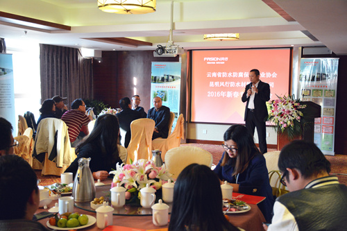 1月20日下午,由云南省防水防腐保溫行業(yè)協(xié)會、昆明風(fēng)行防水材料有限公司主辦的2016年新春專家團(tuán)拜會,在鼎易大酒店拉開帷幕。來自云南省防水防腐保溫行業(yè)協(xié)會、房地產(chǎn)業(yè)協(xié)會、設(shè)計院、各大型房地產(chǎn)企業(yè)等技術(shù)專家代表近30人參加了此次會議。 會上,省防水防腐保溫行業(yè)協(xié)會秘書長蘇燕女士、原秘書長徐啟常先生依次發(fā)言,表明了云南省建筑防水行業(yè)的新發(fā)展,必須重質(zhì)推優(yōu),必須鑄造精品。房地產(chǎn)業(yè)協(xié)會會長韓慶忠先生、設(shè)計院專家代表周圍先生也陸續(xù)發(fā)言,并對風(fēng)行防水多年來在產(chǎn)品及服務(wù)上的優(yōu)秀品質(zhì)表示了高度贊譽。 隨后,東方雨虹防水集團(tuán)總裁劉斌先生強調(diào),風(fēng)行防水擁有中國西南地區(qū)規(guī)模龐大、設(shè)備先進(jìn)的防水卷材生產(chǎn)線及質(zhì)量檢測系統(tǒng),將不斷強化科技創(chuàng)新,在品質(zhì)上深刻鉆研,在質(zhì)量上深度完善,在服務(wù)上不斷提升,堅決致力于成為“中國西南及東南亞富有價值的防水系統(tǒng)服務(wù)商”。