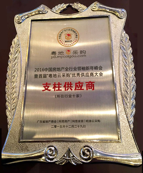 2015年12月29日,“2016中國房地產全行業新年峰會”暨“中國地產家居榜和粵地供應商大會”在廣州香格里拉大酒店隆重舉辦。本次峰會由廣東省地產商會、明源云采購、網易家居聯合舉辦。富力集團董事長李思廉、星河灣集團董事長黃文仔、時代地產董事長岑釗雄等房地產“大咖”同臺激辯,以房企轉型探索、營銷創新、智慧住區、采購模式變革為切入點,集中探討“互聯網+”時代背景下房地產與家居行業的轉型與發展,來自房地產行業上下游企業近1000余行業精英出席了此次峰會。   降低經營和采購成本、創新產品、提高效率,已成為企業發展的必然趨勢。在本屆“2016年中國房地產全行業新年峰會”上,多位嘉賓參與了主題為“粵地云采購——共筑新年‘軍團采購’共贏之路”的論壇沙龍。經過“明源云采購”平臺和廣東省開發商的強烈推薦,最終評定江蘇臥牛山保溫防水技術有限公司榮獲“保溫材料類支柱品牌供應商”這一殊榮。