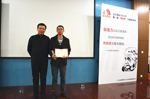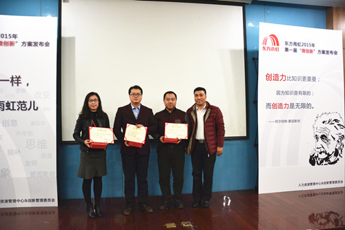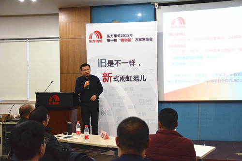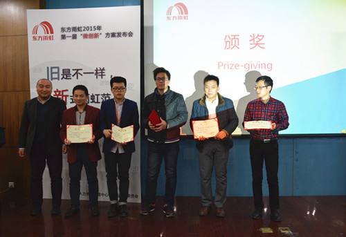 2015年12月16日,東方雨虹2015年第一屆“微創(chuàng)新”方案發(fā)布會順利召開。來自生產(chǎn)運營中心、民用建材分公司、信息部等各系統(tǒng)、各部門共計9支優(yōu)秀代表隊參加,東方雨虹總裁向錦明先生出席本次發(fā)布會。 現(xiàn)場評審團由8名創(chuàng)新委員會委員、50名大眾評審組成,通過使用“雨虹幣”投票累計幣值的方式產(chǎn)生本屆“微創(chuàng)新”方案比賽的最終結(jié)果。來自生產(chǎn)運營中心的竇登裕憑借《預(yù)浸油溫控系統(tǒng)改進》方案的優(yōu)良效果,獲得現(xiàn)場很高支持率,榮獲“創(chuàng)新達人”稱號;技術(shù)保障分中心、應(yīng)用技術(shù)中心、信息管理中心、民用建材分公司以及北京公司各代表隊依次斬獲二至九名。