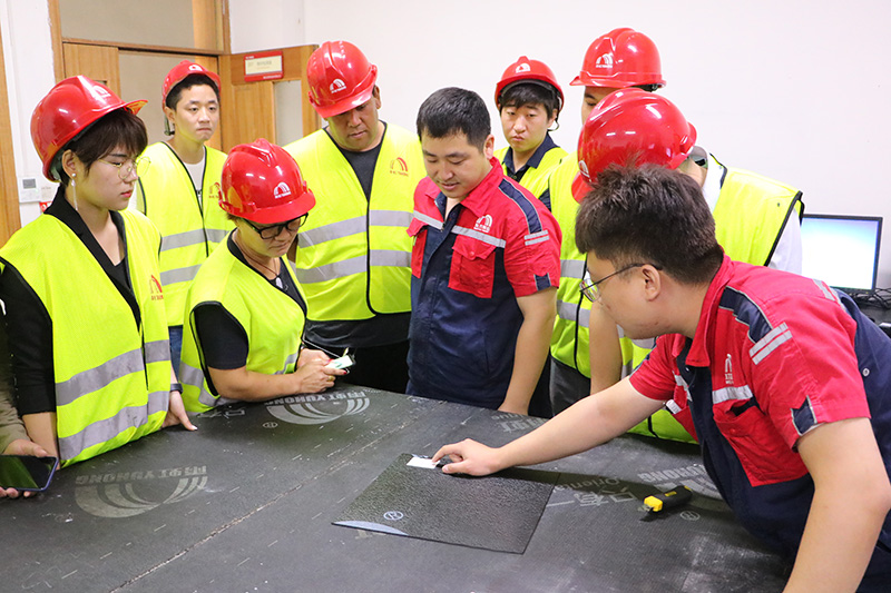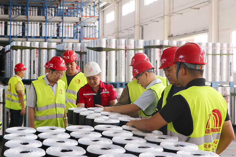 在東方雨虹唐山生產基地瀝青材料主任工藝師萬東永、東方雨虹工建集團渠道天津區域經理李雪鵬的帶領下,合伙人先后參觀了唐山東方雨虹的卷材生產車間,涂料生產車間和質量檢測中心,從原材料進廠質量把控、產品的生產過程、成品出廠的層層質量檢測等生產一線的實際情況有了全面認知。