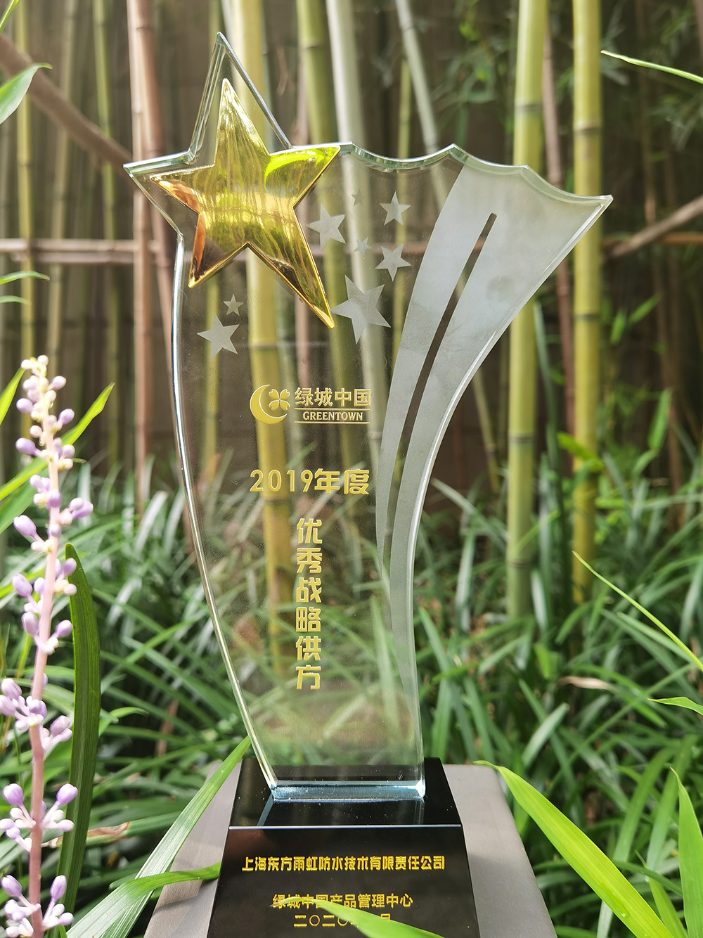 日前,綠城中國控股有限公司(以下簡稱“綠城中國”)頒發“2019年度優秀戰略供方“獎項,東方雨虹(ORIENTAL YUHONG)作為防水行業內唯一獲獎單位出席領獎。