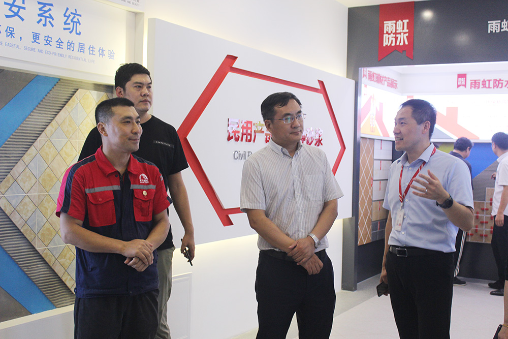 7月30日下午,河北省建筑防水協會會長楊際梅調研唐山東方雨虹,協會培訓師武曉劍等陪同調研。