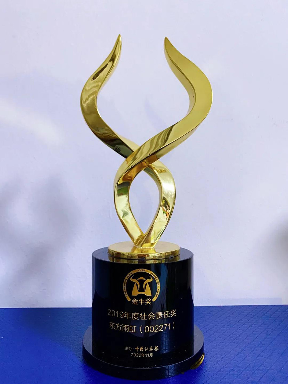 11月19日,由中國證券報、??谑腥嗣裾摵现鬓k的“2020上市公司高質量發展論壇暨第22屆上市公司金牛獎頒獎典禮”在??谂e行,東方雨虹(ORIENTAL YUHONG)榮獲年度金牛社會責任獎。