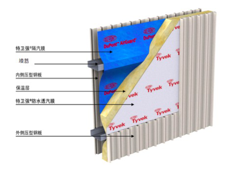 冷庫其特殊的低溫條件使其對建筑圍護結構的保溫隔熱性能和防潮隔汽性能提出了超高的要求,特衛強®防潮隔汽膜利用杜邦Typar復合聚烯烴、金屬隔熱涂層生產制作而成,可提供超高透濕阻,可以阻隔庫內潮氣向保溫層的滲透,確保了冷庫保溫隔熱材料長期有效;另外其100%氣密,可滿足冷庫更嚴苛的氣密性設計要求,降低冷庫的制冷能耗。