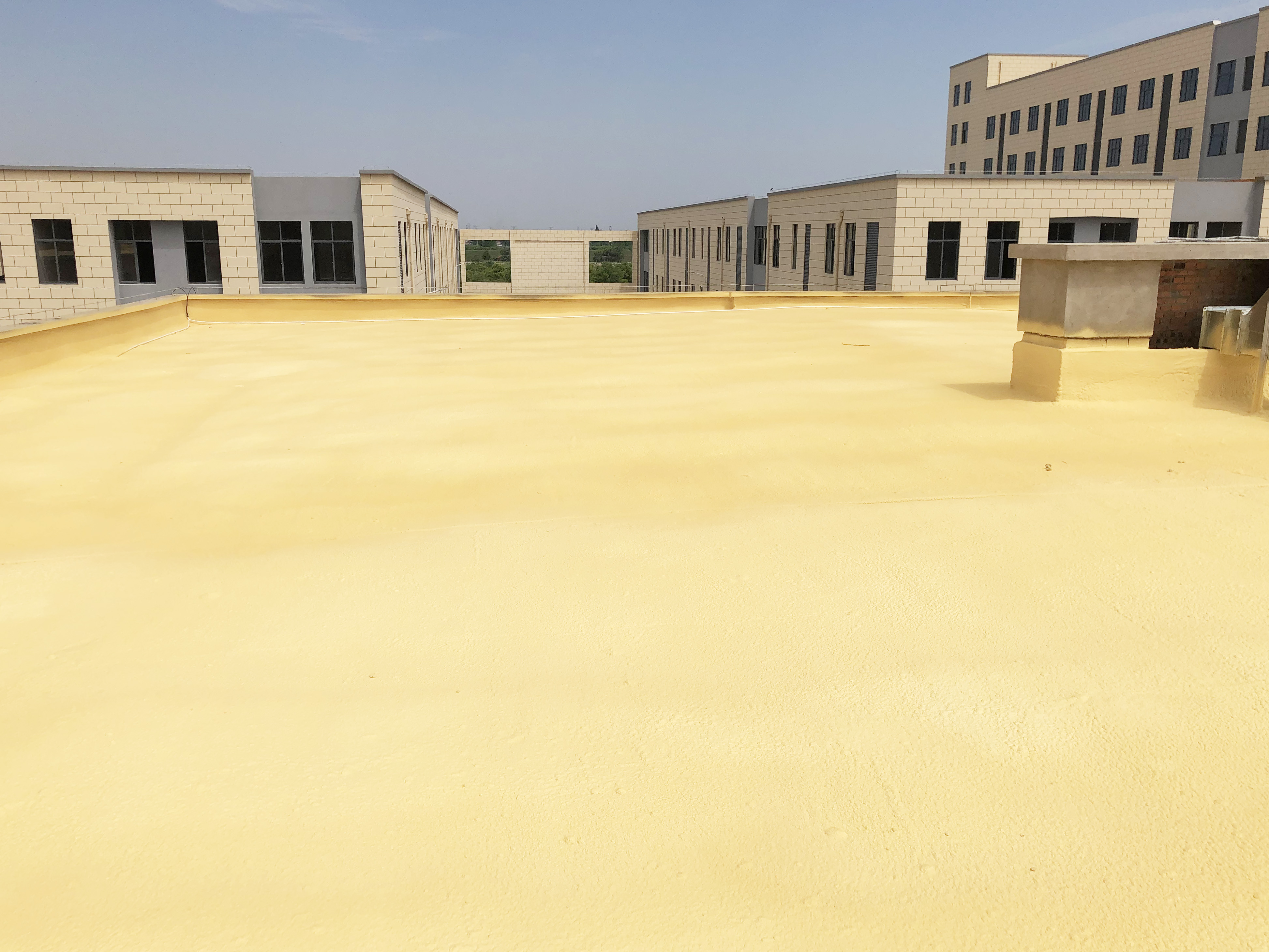 尤其適合形狀復雜、管道縱橫的基層表面施工,易于保證工程質量。聚氨酯硬泡屋面施工時不需大型吊裝設備,一套設備在良好條件下每天可完成屋面1000㎡。