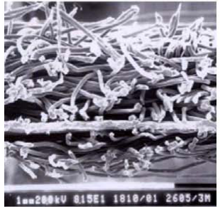 (1)單一功能層:特衛強®防水透汽膜采用的是閃蒸紡粘聚乙烯單一構造,此產品采用獨特的閃蒸法工藝將HDPE紡粘而成,經閃蒸法處理的3-5微米的纖維三維立體的交織在一起,組成了無數超微小的曲折孔道,有效的阻止了液態水(水分子團)及流動的空氣的通過,而單個游離的水分子則可順利通過。同時,這種錯綜立體的纖維結構為生產時一道成型,單一功能層厚度達0.17mm厚,單一功能層同時實現防水、防風、透汽等功能,也使得特衛強®具有相當的強度與可靠的耐久性,不會出現分層現象。