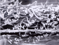涂層復合織物構造產品因表面為連續致密的涂層,防水性能較好,但透汽性能較差;涂層構造的產品一般防水性能在2m水柱不透水,水蒸氣透過量80-100g/m2.24h,拉伸強度在150N/50mm左右。