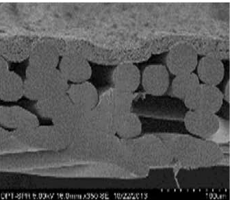 (2)多功能層:國內外大多企業均采用此技術,以透汽膜層為核心功能層,根據需要選擇復合一層或兩層無紡布支撐層、編織袋增強層,采用熱熔膠粘結或熱壓復合而成。膜材整體厚度偏厚,但功能層薄,約為30微米。