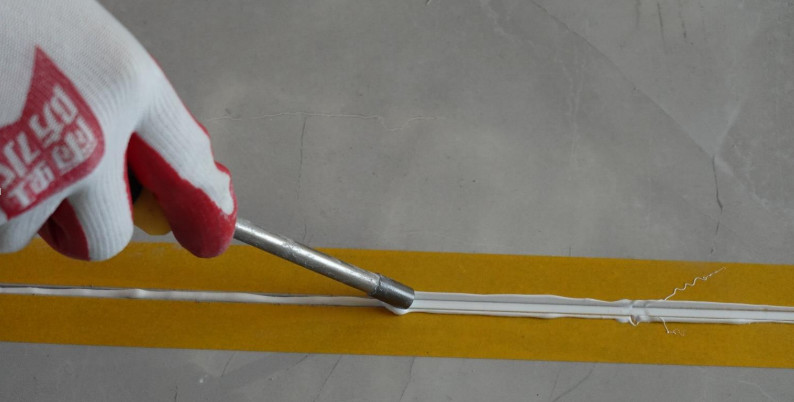 施工前去除前段20cm:擠壓去除前段20cm的出料,使靚縫劑AB組分充分混合均勻,以防攪拌不均難以固化。