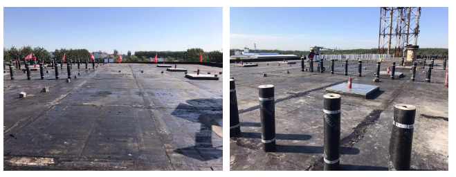 針對情況,東方雨虹重新為該屋面設計了3mm+3mmSBS雙層施工方案,并按照東方雨虹標準化施工標準嚴格施工,對落水口管根、陰陽角、空調基座等細部節點都進行了細致處理。