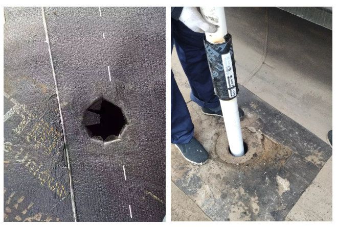 經過現場仔細勘察發現,該屋面的原防水層存在多種問題:防水材料不符合國家標準,只簡單鋪了一層防水卷材,落水口管根、陰陽角等細部節點未進行特殊處理,加上卷材本身質量不佳,瀝青老化開裂、搭接縫開裂現象都非常嚴重,造成屋面大面積漏水,即使原施工單位已經進行過維修,仍然沒有徹底解決滲漏問題。